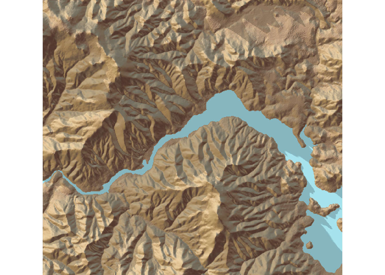 rayshader::add_shadow(ray_shade(elmat, zscale = 3), 0.5) %>%